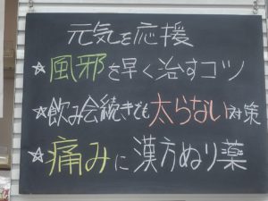 12月に入って、一段と寒くなりました。体が冷えると体やお肌に不調が現れやすくなります 毎年12月に入ると多くなるご相談を黒板に書いてみました 「あれ、どういうこと?」とお客様が聞きやすくなるといいなと思います 🔶風邪を早 […]